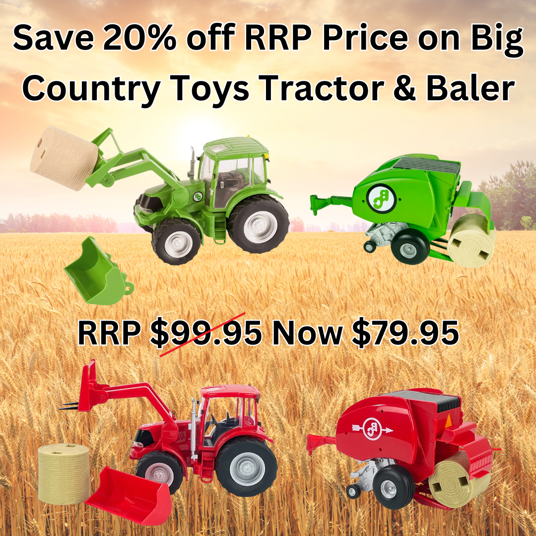 Get 20% OFF the RRP on the Big Country Toys Tractor & Baler (Green & Red) - this month only!