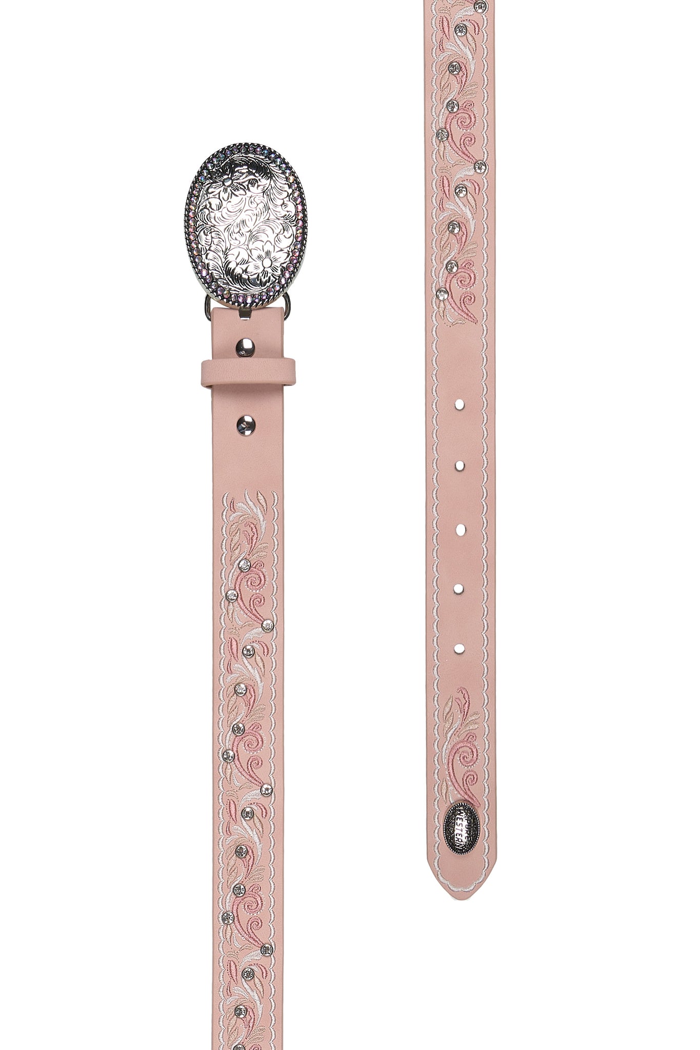 The Pure Western Kids Soleil Belt showcases premium PU construction built to withstand active wear. An embroidered strap provides distinctive character, while diamanté studs add refined sparkle. The removable feature buckle offers versatility for different styling options, and an authentic Pure Western concho delivers genuine western heritage. Antique silver hardware completes the design with understated elegance. Ideal for young riders and western enthusiasts seeking quality craftsmanship with eye-catching detail.