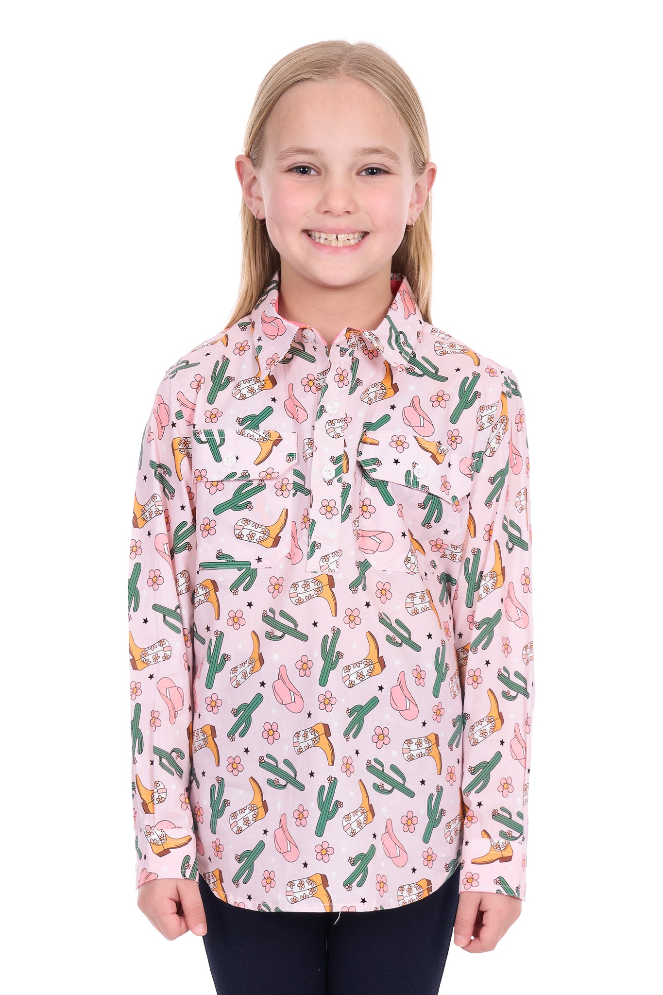 Kid's Cleo Half Placket Long Sleeve Shirt - H6W7101170