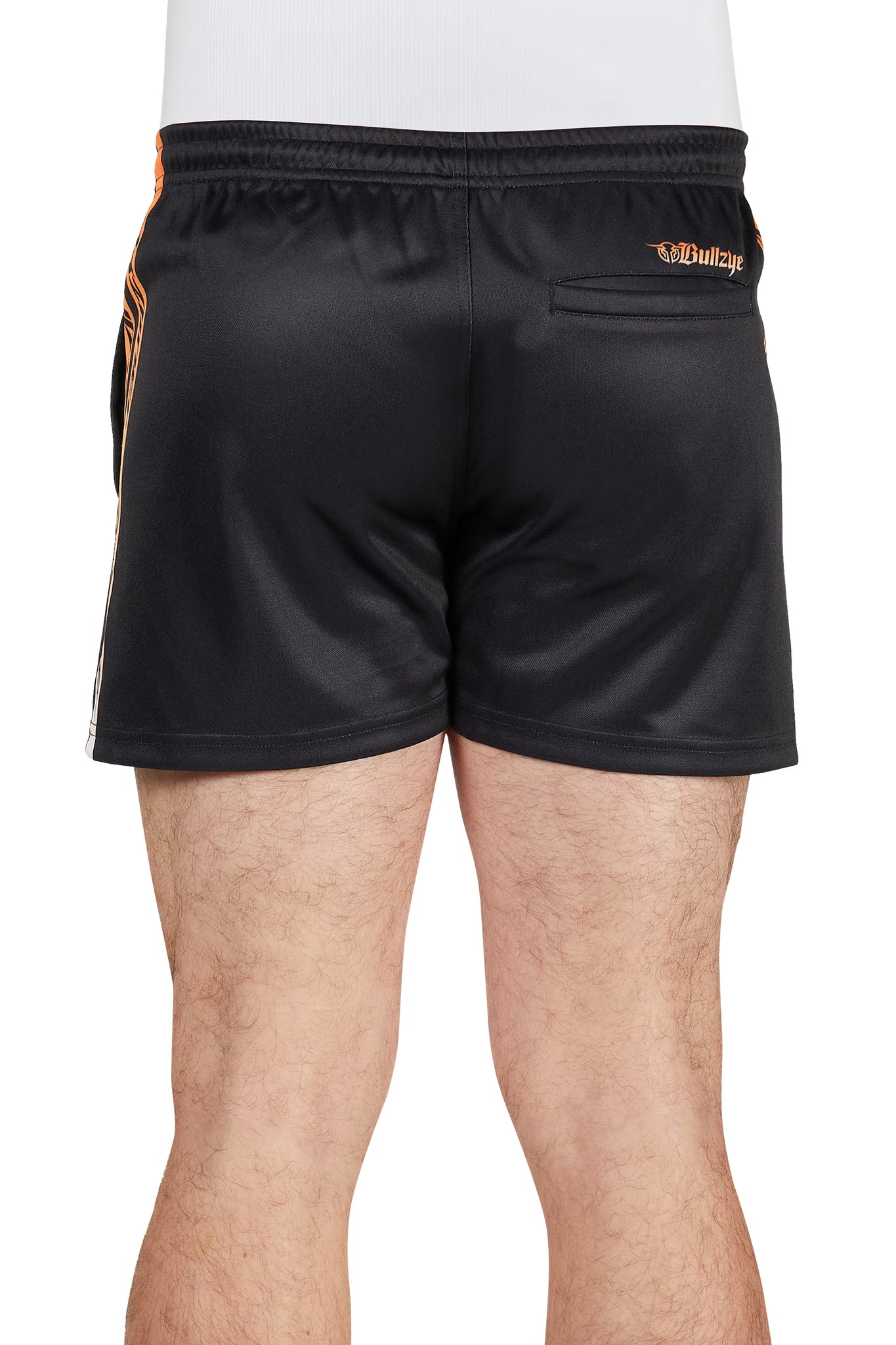 The Bullzye Mens Bullring Sports Shorts are made from 100% polyester, featuring an elasticated waist with an internal drawcord for an adjustable, secure fit. Designed with side welt pockets equipped with concealed zips and a back welt pocket, they offer practical storage without compromising sleek style. The distinctive Bullzye prints on the side stripes, front hem, and back pocket add a signature look. These shorts combine functional design with expert tailoring for active performance and comfort.